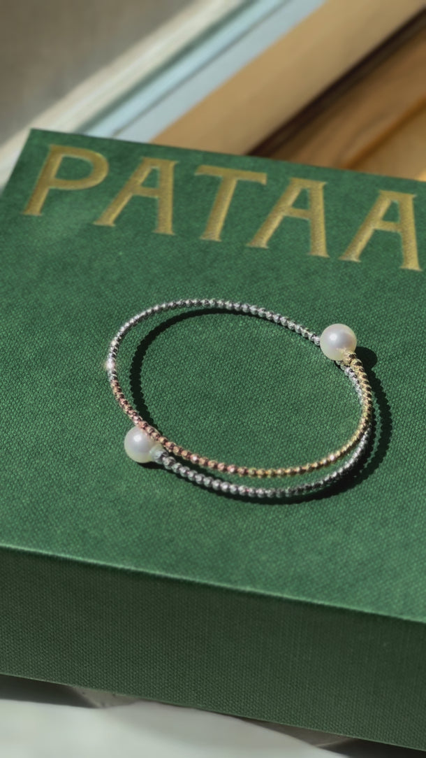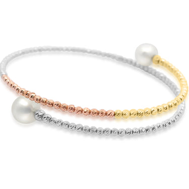18K White, Gold and Rose Gold Akoya Pearl Bracelet Cuff