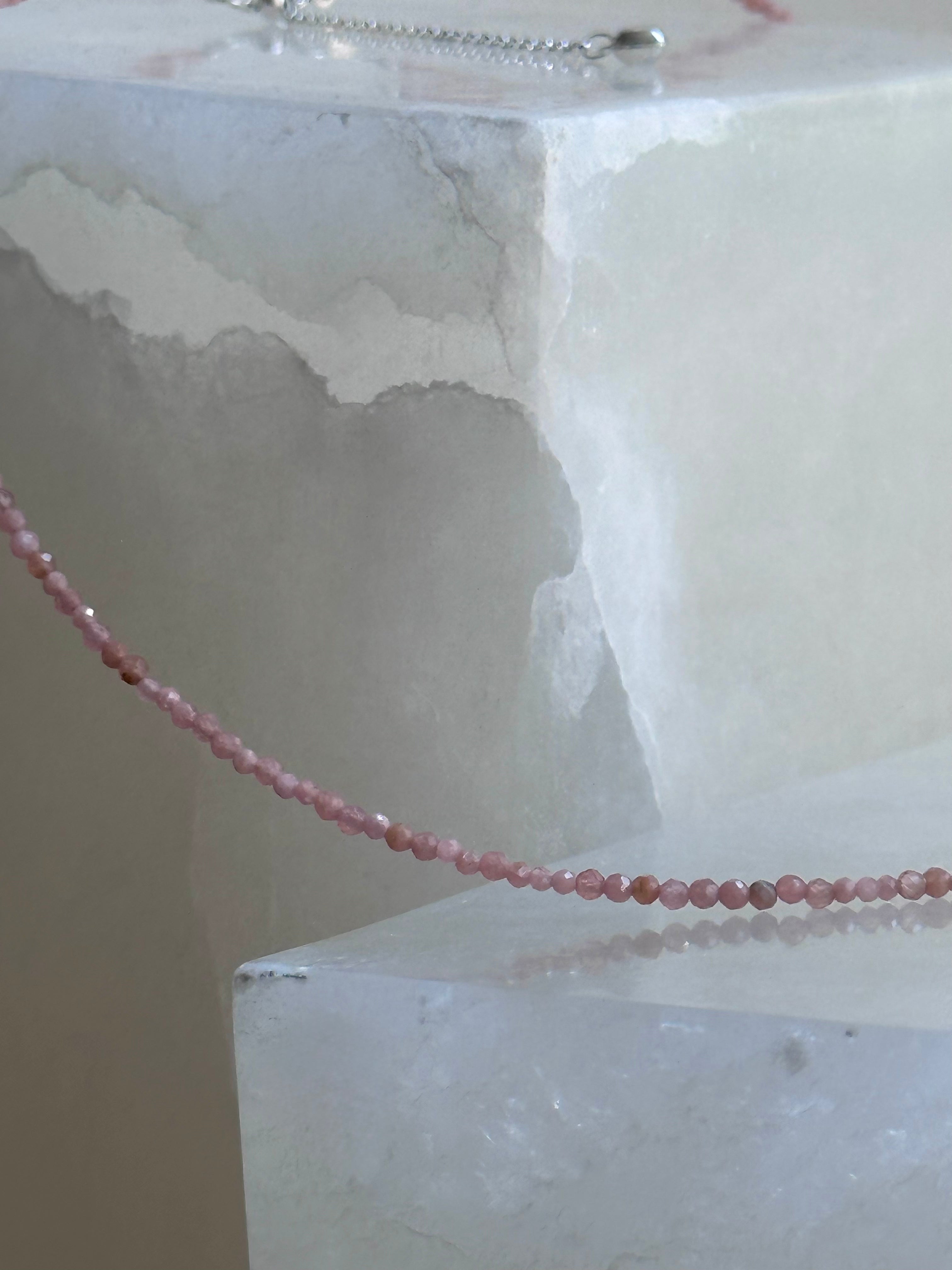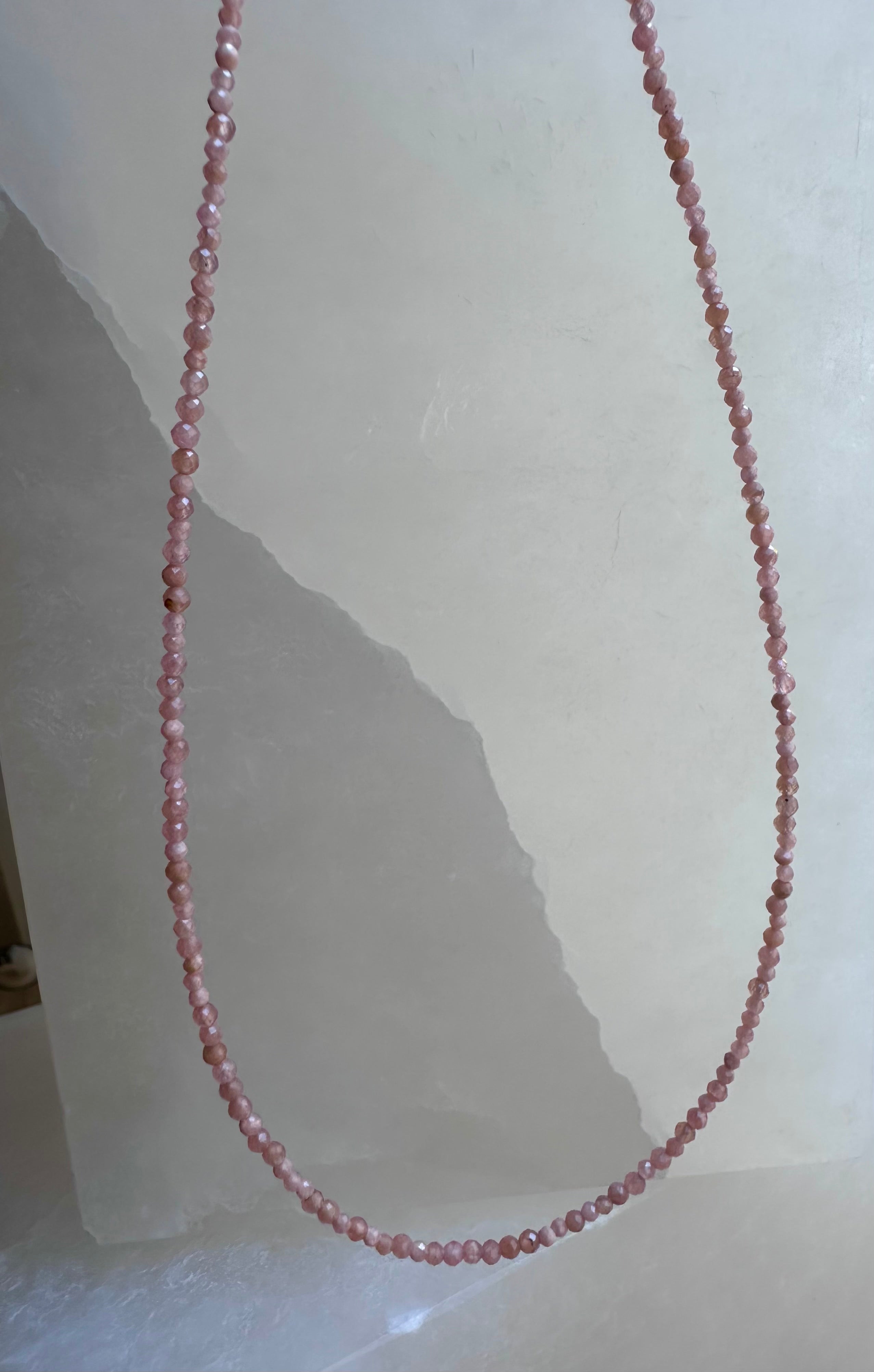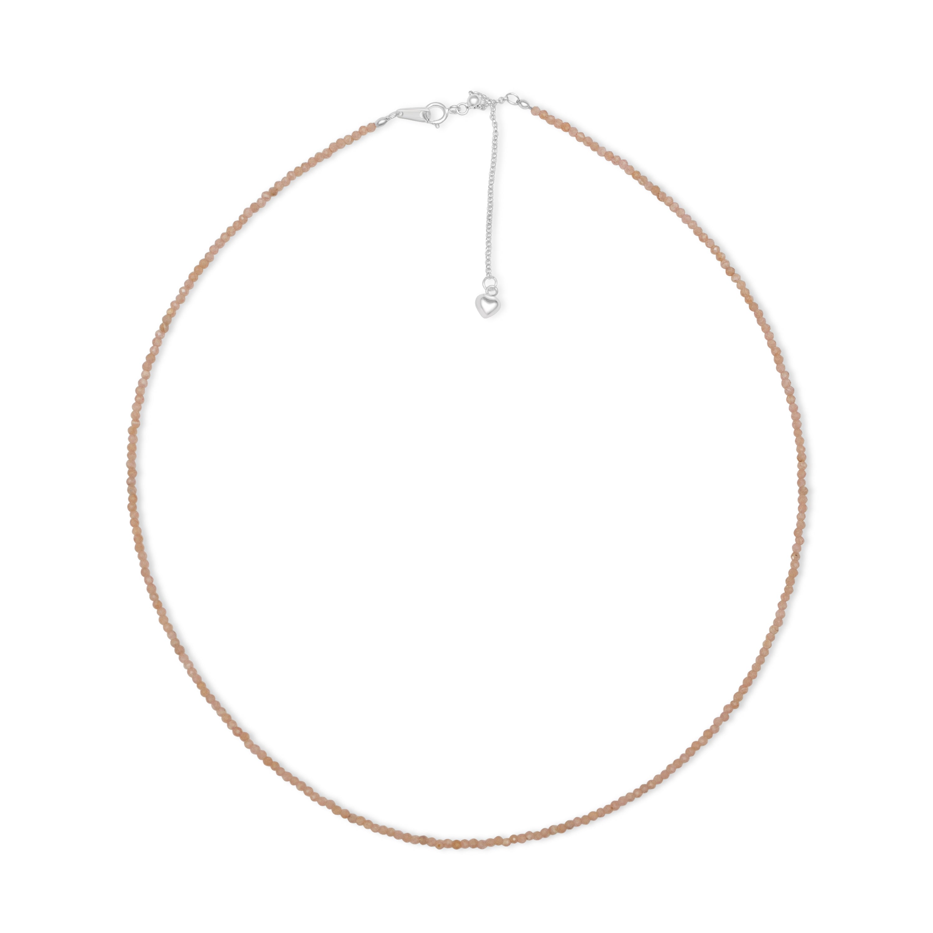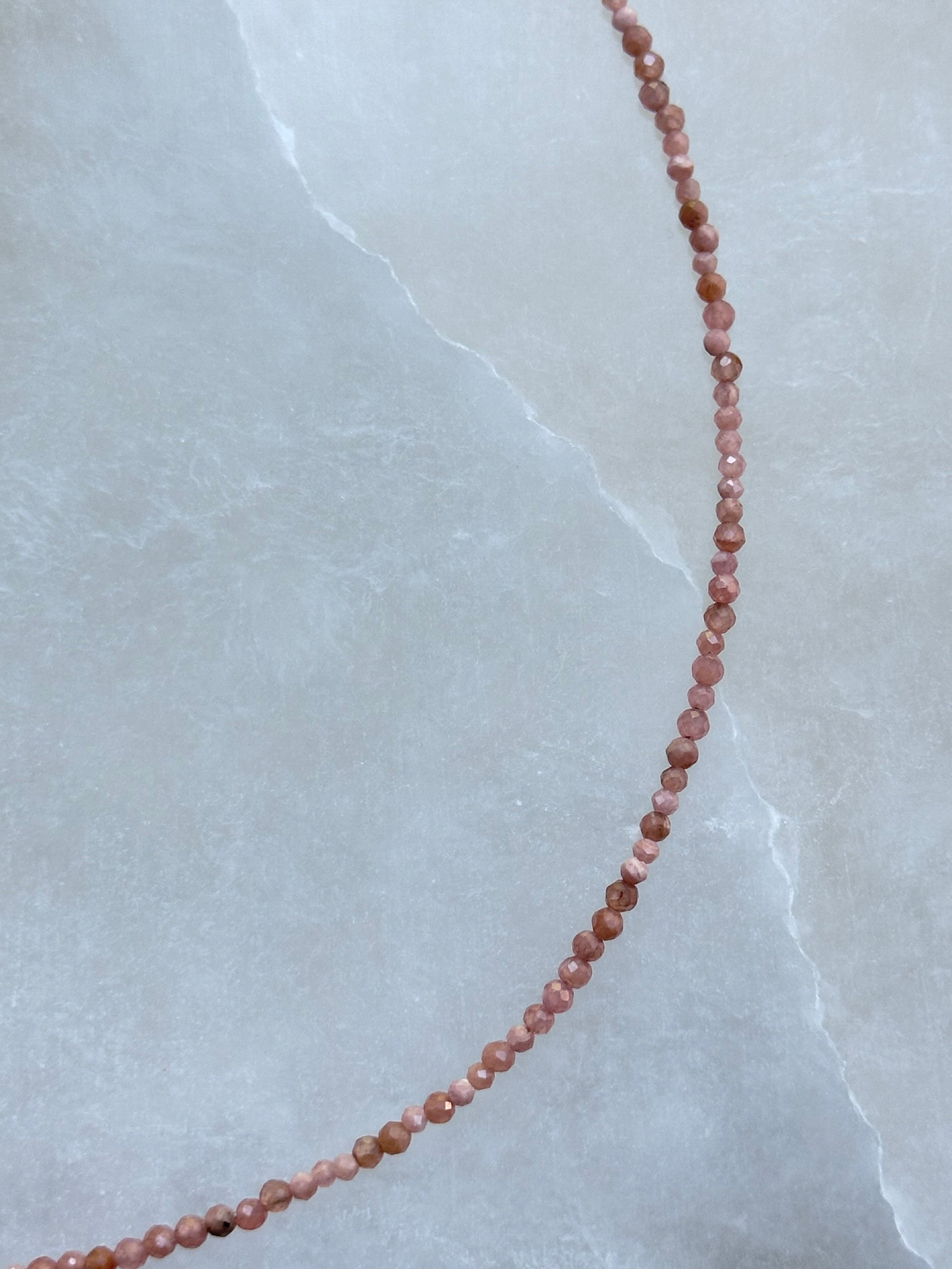 Delicate and captivating, this Peach Moonstone necklace features a beautifully polished gemstone that radiates a soft, warm glow reminiscent of a serene sunset. The stone's gentle peach hue, interspersed with a subtle shimmer, makes it an elegant and versatile addition to any jewelry collection.